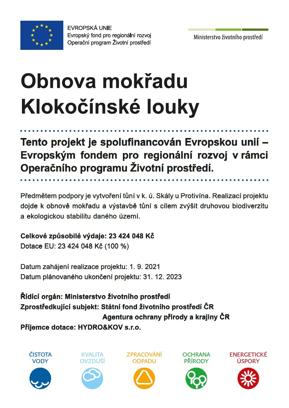 Projekt byl spolufinancován Evropskou unií – Evropským fondem pro regionální rozvoj a Státním fondem životního prostředí ČR v rámci Operačního programu Životní prostředí.